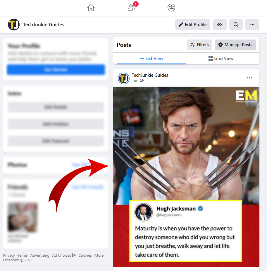 - Click on the “Privacy” icon (globe icon) beneath your profile name, right beside the date of the post.