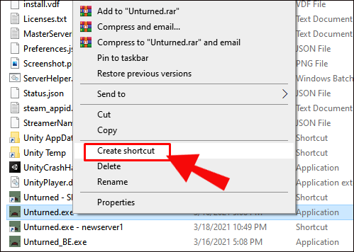 5. Create a shortcut of the “Unturned.exe” application.