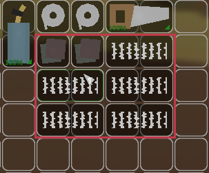 - Drop the two wooden support items in the first “Materials” tab, then drop three barbed wires into the second tab.