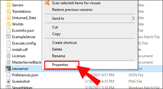 2. Right-click on Unturned, then select “Properties.”