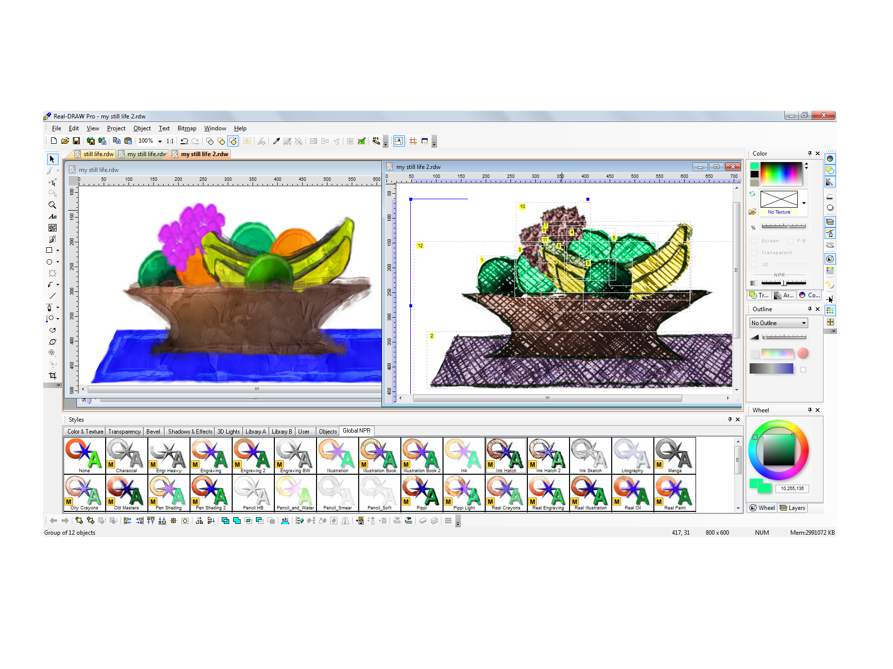 And there’s a further boost for NPR from Real-Draw Pro 5’s new Area Gradients tools. These let you double-click on an object to add multiple colours that are then blended smoothly together. They’re handy for creating photo-realistic images, but prove even more useful for NPR styling where they integrate beautifully with the artistic effects to help bring artworks to life.