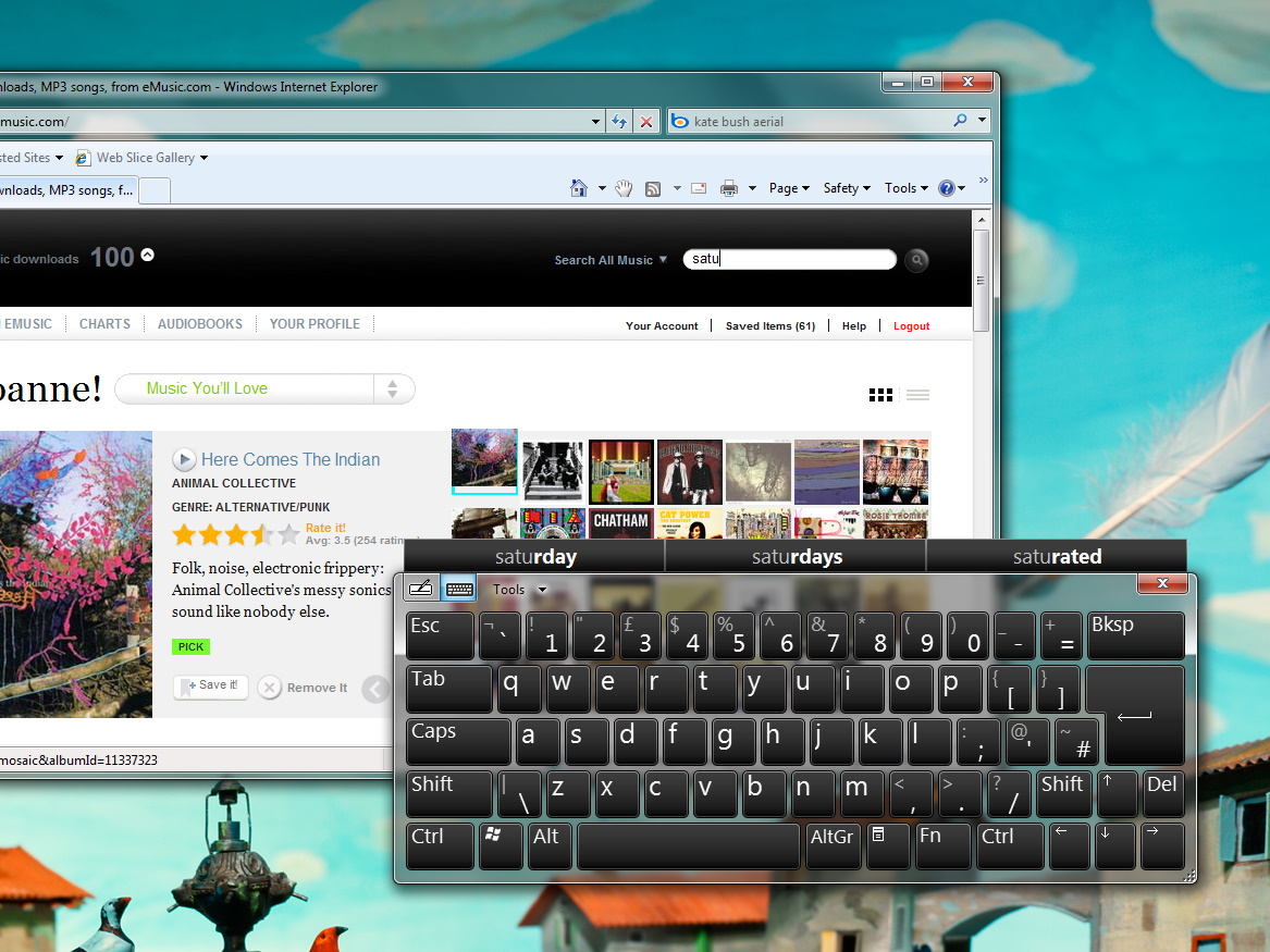 The onscreen keyboard is more usable than its Vista counterpart too, with the new multitouch capability allowing you to hold Shift and hit a letter at the same time to get a capital.