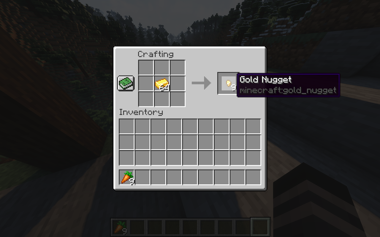 - Craft your Gold Ingots into Gold Nuggets.