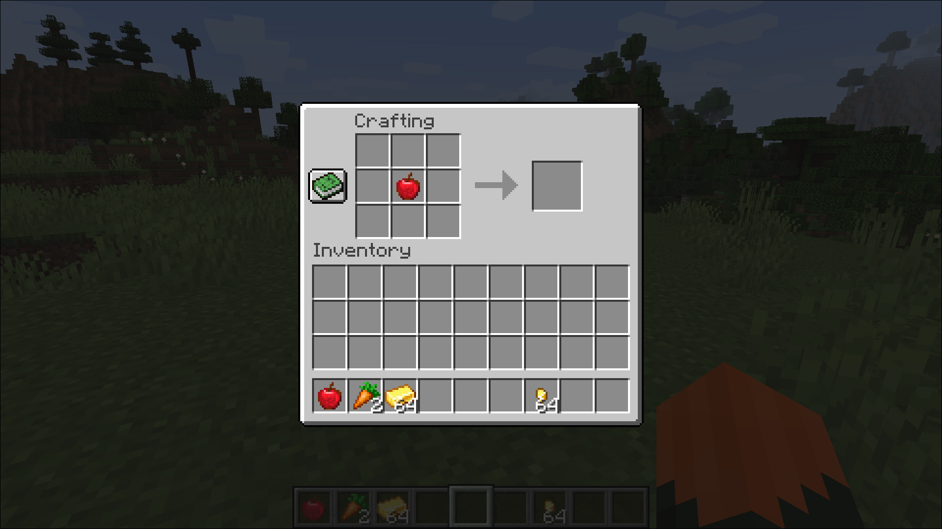 - Break some oak or dark oak leaves until you have at least two apples.