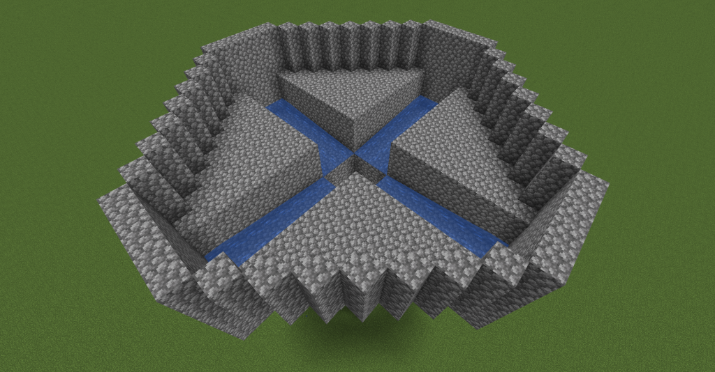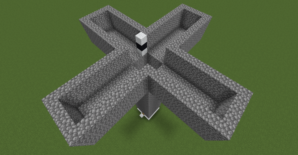 Now we’re going to build the actual spawning platforms. Level with the top of the walls you just built, fill in the corners of the plus sign with solid blocks so that when you’re done the whole thing looks like a diamond from the top.