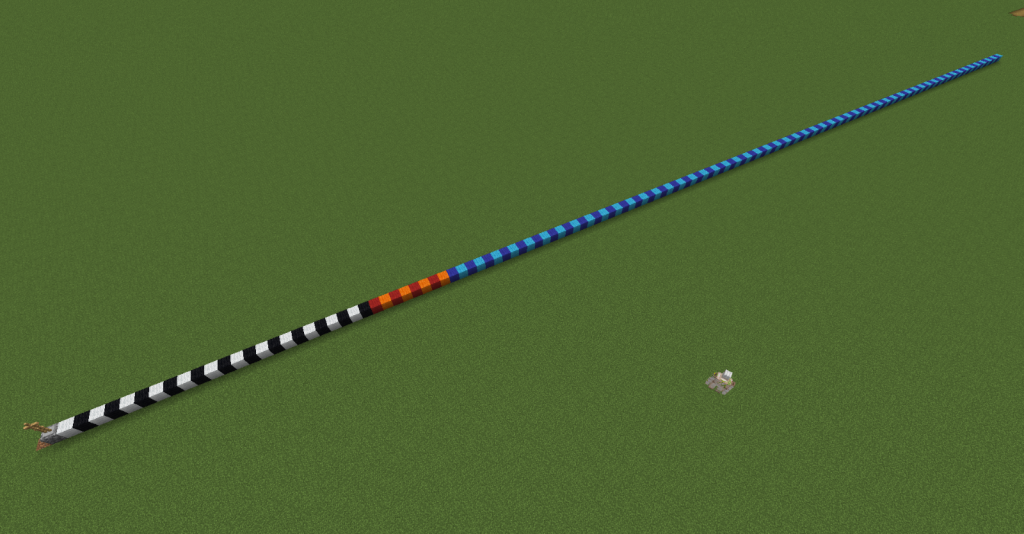 Next, we’ll want to place carpets on top of all the hoppers to keep mobs from accidentally falling into the hoppers and getting stuck. You don’t really want to use pressure plates for this because they make a ton of noise when mobs walk on them (not mechanically relevant, but it can be annoying to listen to) and when mobs step on them it generates a Redstone signal which will lock the hopper it is on, preventing the hopper from picking up items.