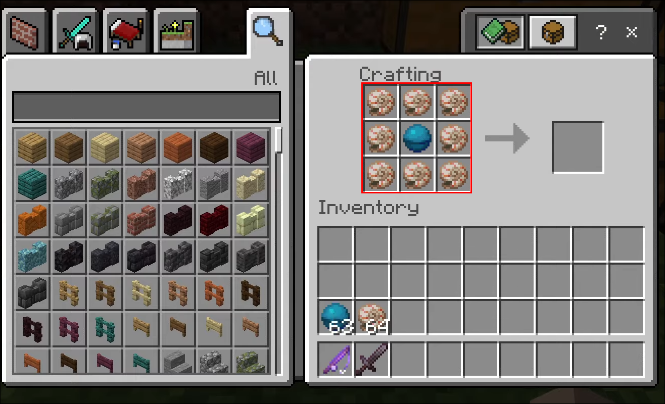- Open your Crafting Table and access your 3X3 grid.