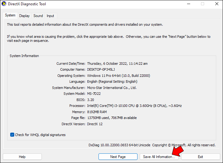 - In the window that comes up, click on Save All Information and save the file with a .txt extension.