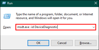msdt.exe -id DeviceDiagnostic” into the “Run” window.