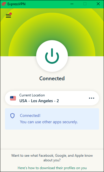 - Open ExpressVPN and locate the connection status and server name.