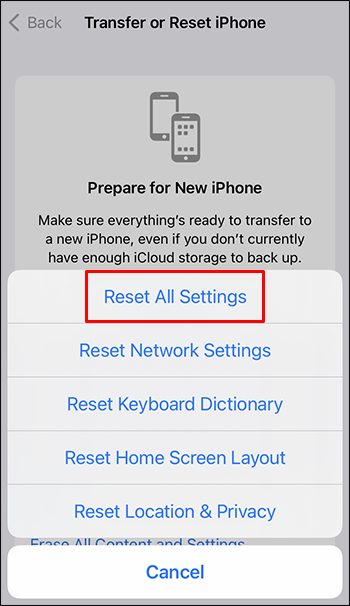 - Select “Reset”, then tap “Reset All Settings” in the pop-up.