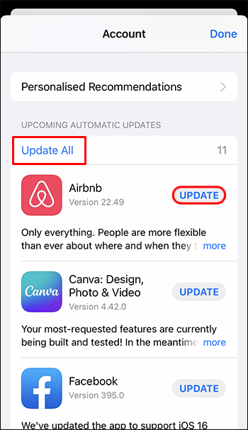 - Choose “Update All” or select the “Update” option next to the specific app you wish to update.