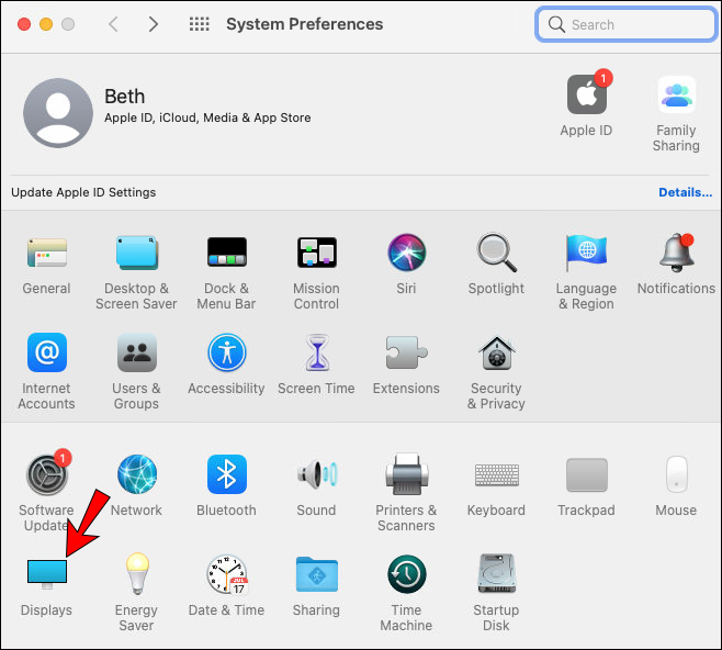 - Open the “Displays” tab and select “Display.”