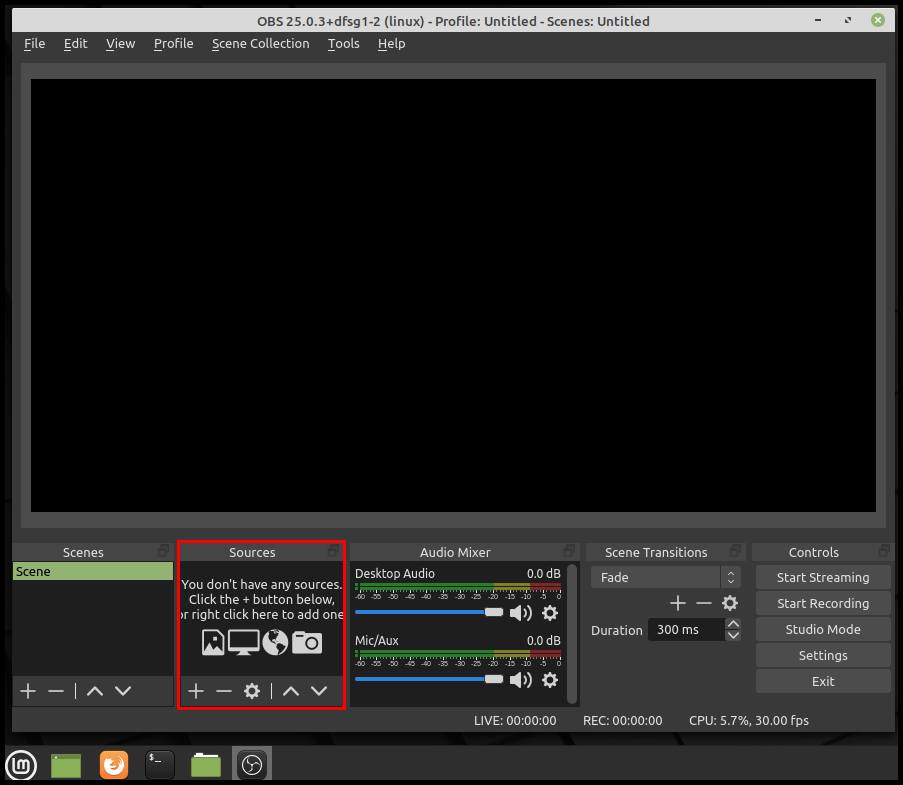 - Launch the OBS Studio app and scroll down to the “Sources” box. Right-click to access a pop-up options menu. Select “Add” and then click “Display Capture” as the source.