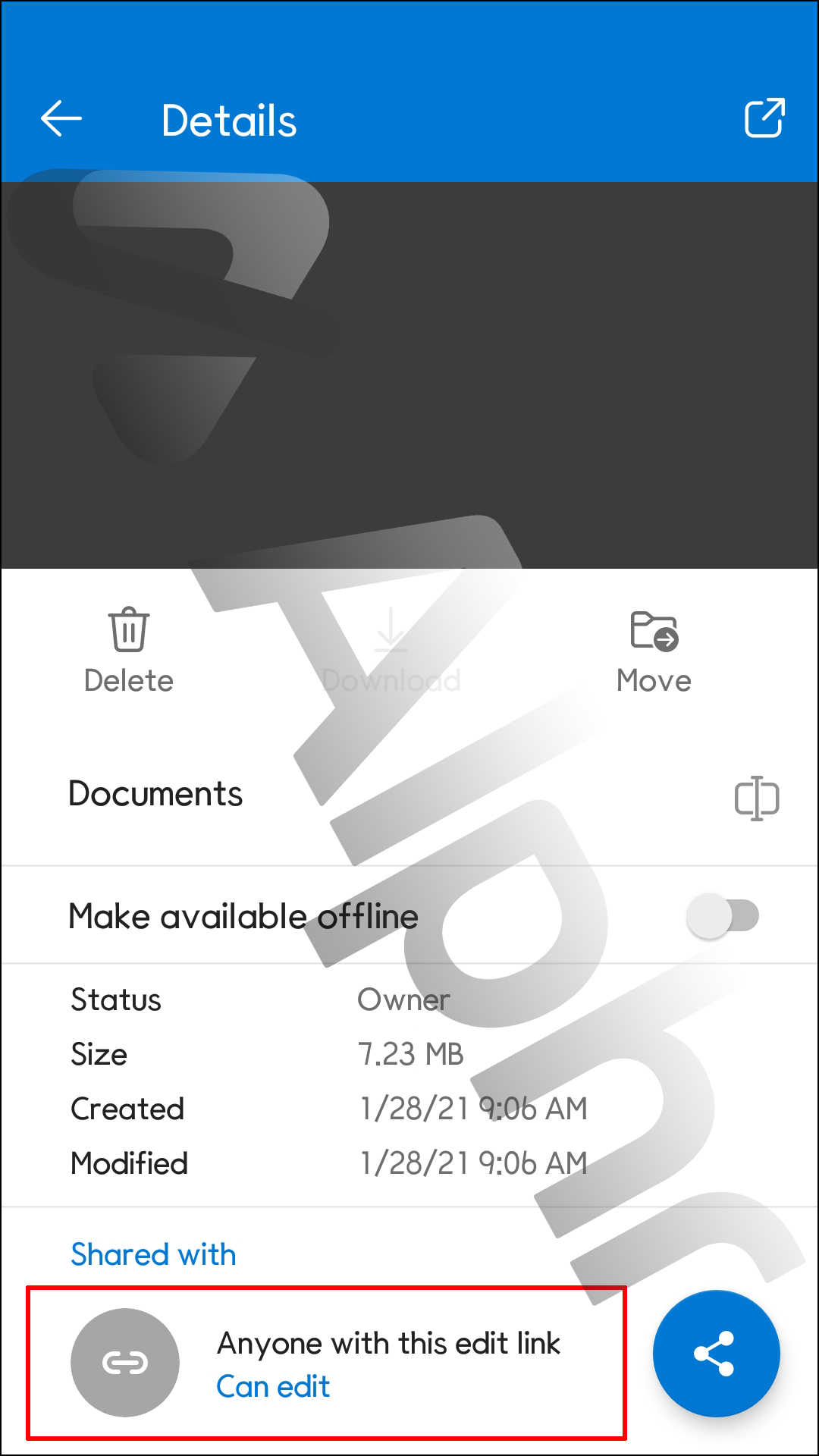 - Beneath the “Has Access from (file or folder)” section, tap the “Anyone with this edit link” right-pointing chevron.