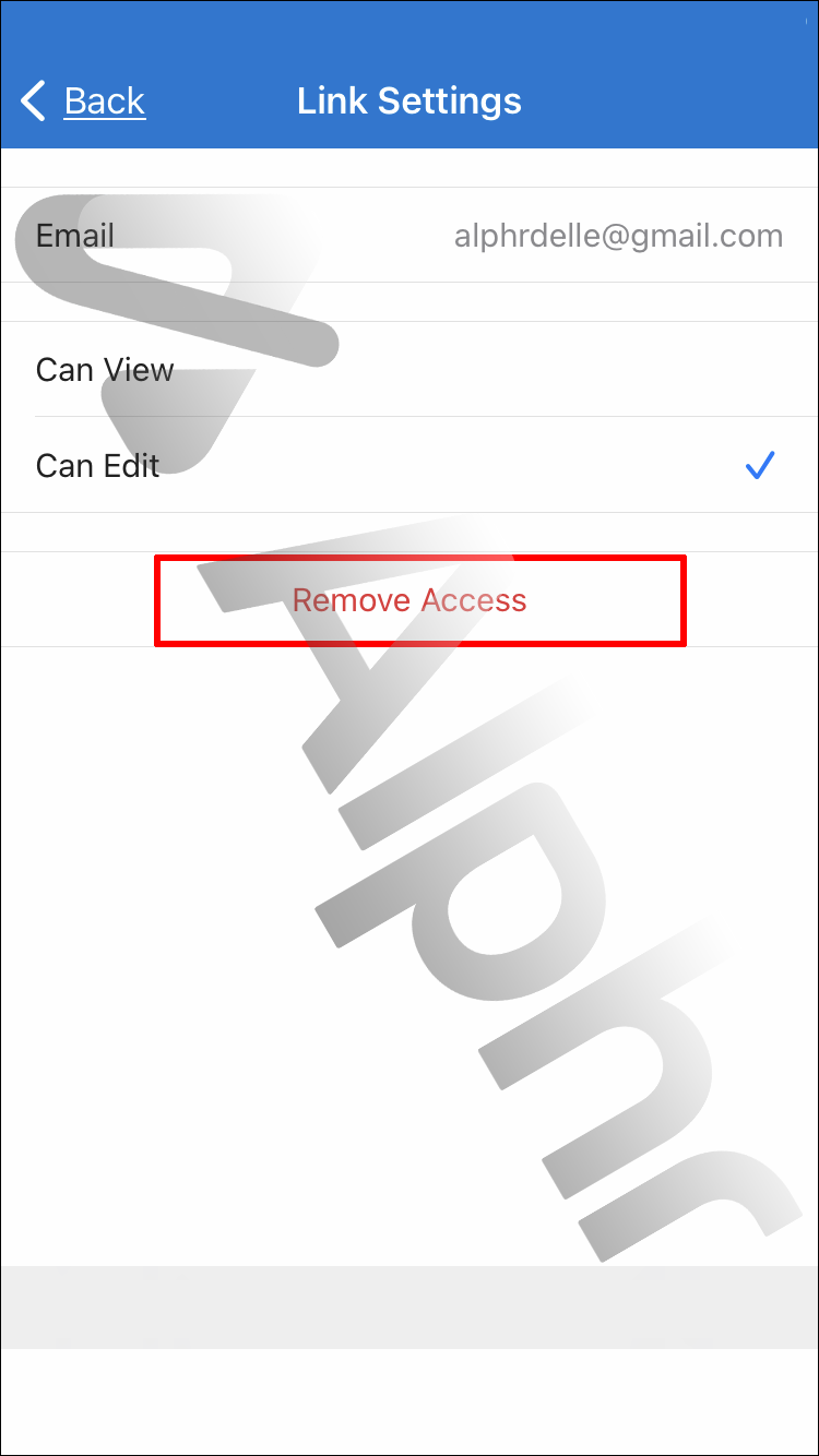 - Tap “Remove Access” to stop sharing the link immediately.