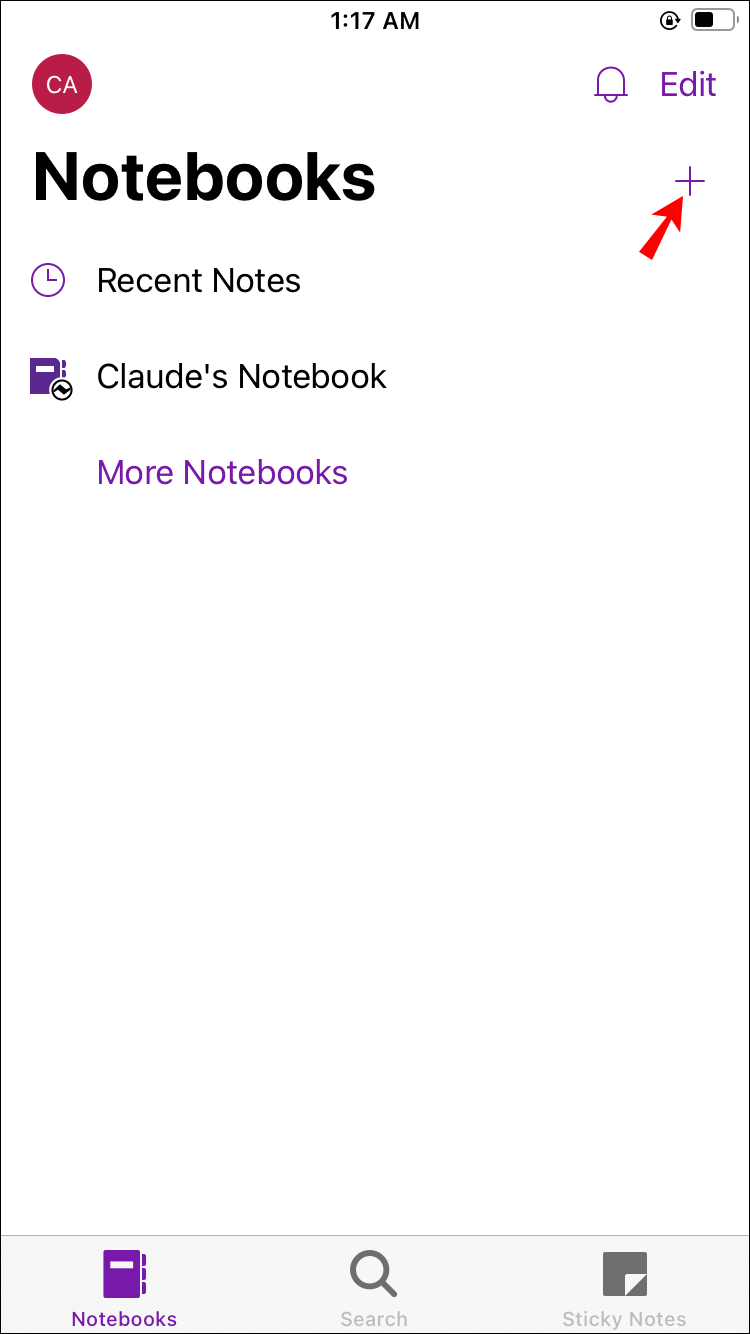 - If you want to add a new notebook, tap on the “+” button in the top right corner of the screen.
