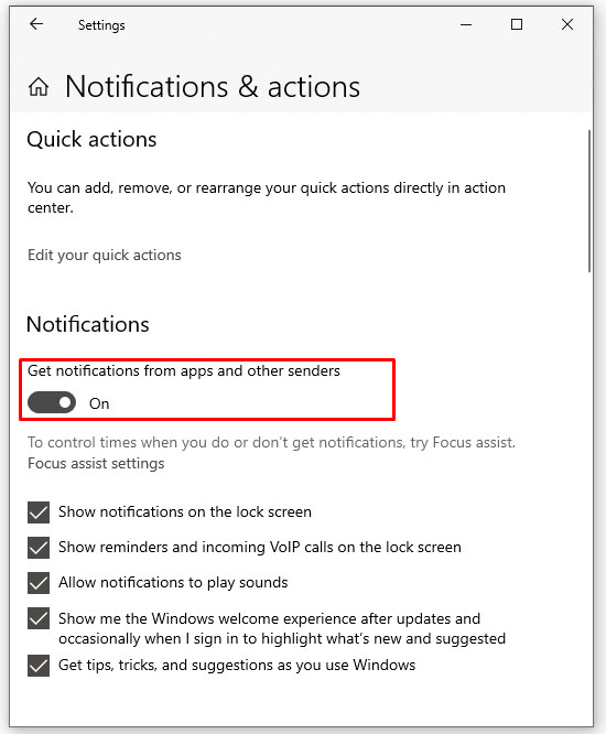 - You can also toggle off individual apps if you prefer under Get notifications from these senders.