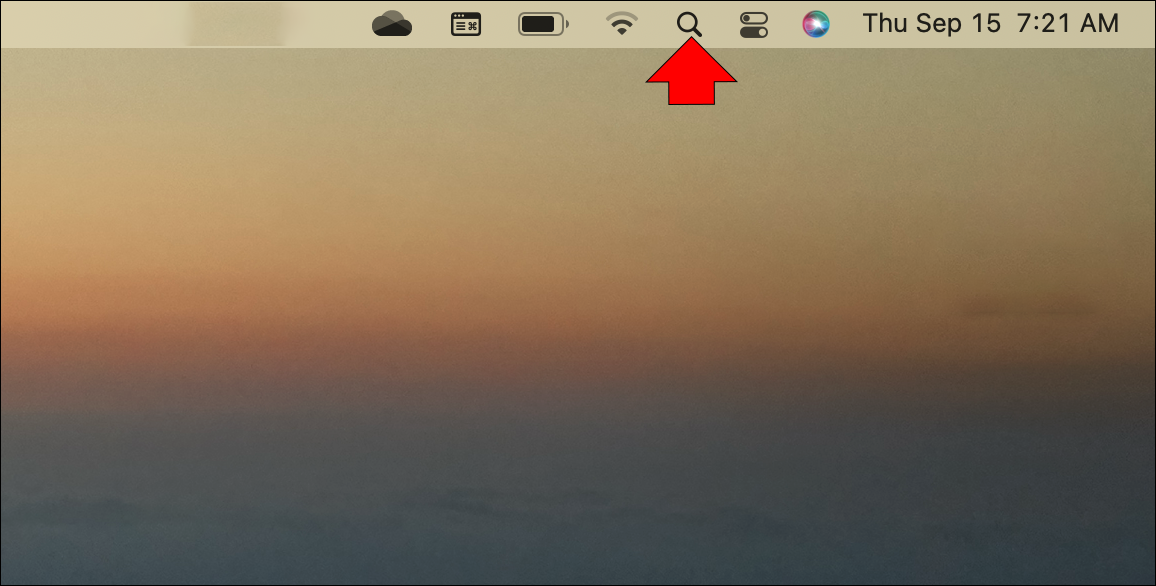 - Click on the “Spotlight” icon. It’s the magnifying glass at the top right corner. The Spotlight feature can also be accessed using the shortcut “Cmd + Space.”