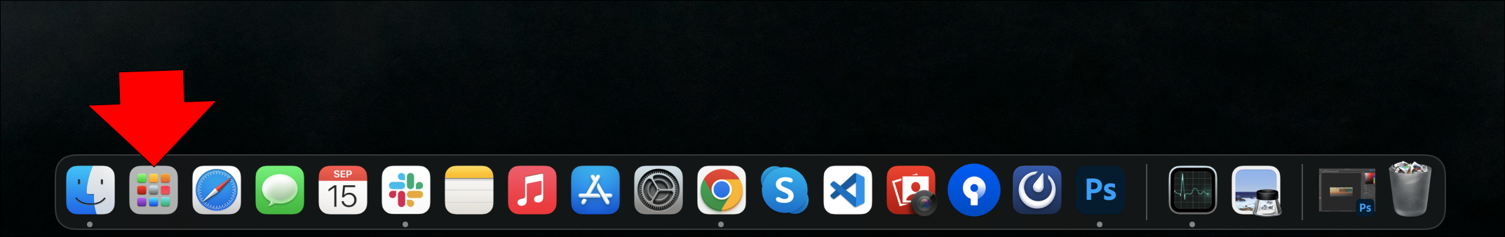 - Go to the Dock and click on the silver rocket icon.