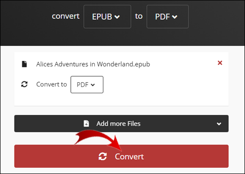- Click on the red Convert button. The book will now start converting. This might take a while, depending on the internet connection speed.