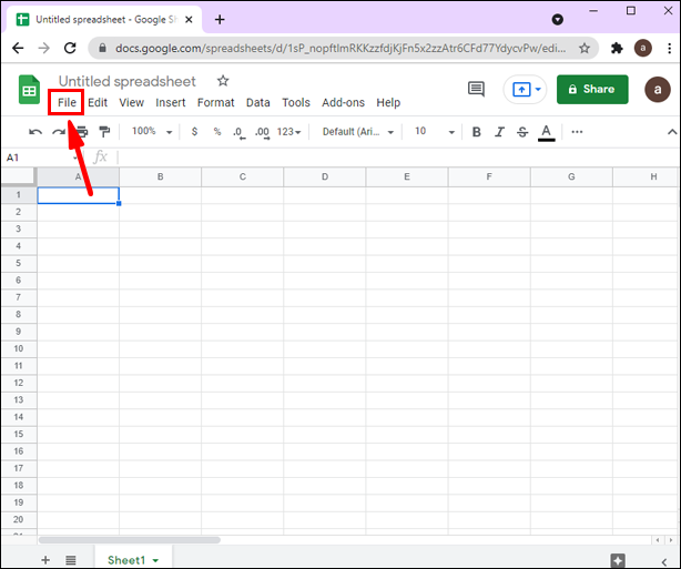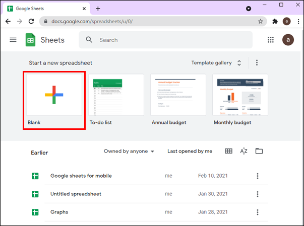 - Click on the plus sign (“Start a new spreadsheet”).