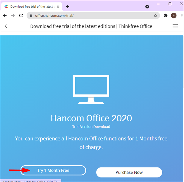 - Visit this page: https://office.hancom.com/trial/.