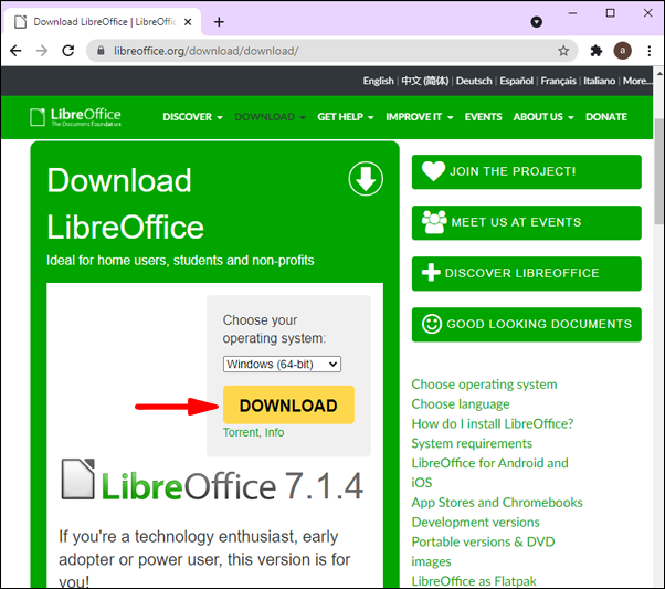 - Start typing “LibreOffice download” and select the first link, or use this link: https://www.libreoffice.org/download/download/.