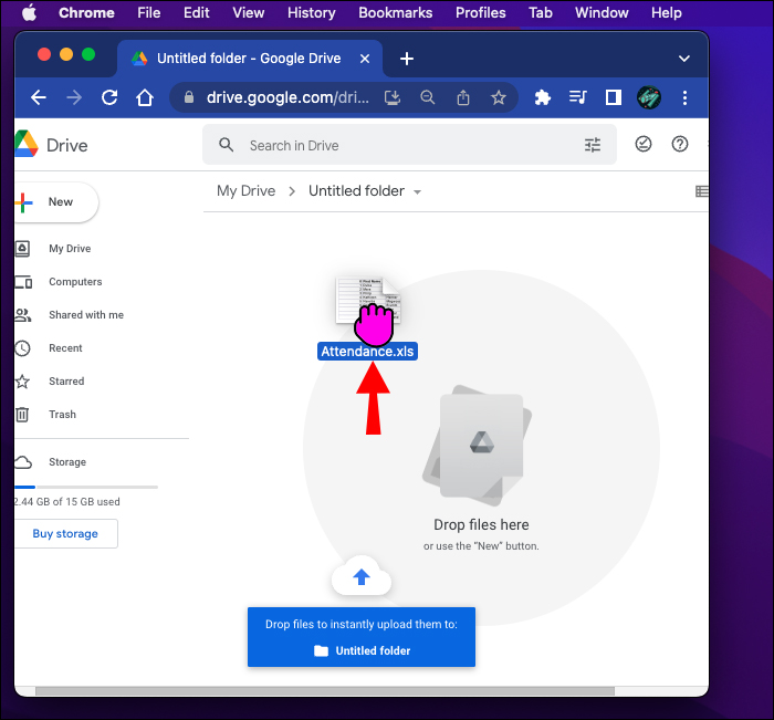 - Drag and drop your Excel file into Google Drive.