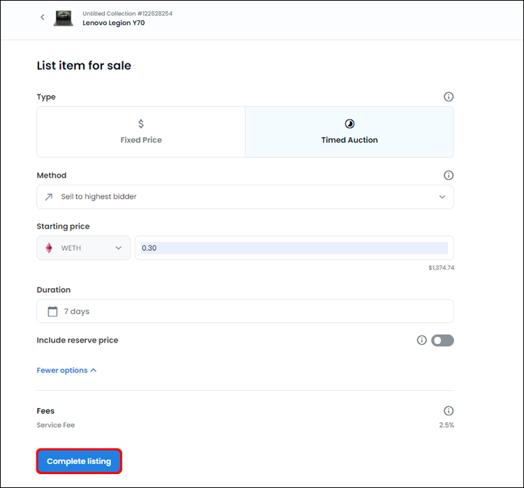 - Once you have everything sorted out, click Complete Listing.
