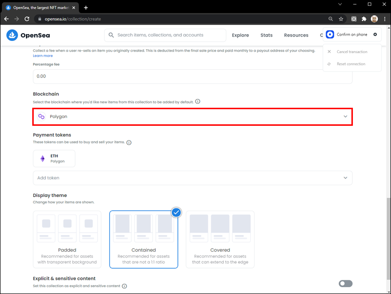 - You’ll be able to choose a blockchain for creating NFTs. Select Polygon from the dropdown menu.