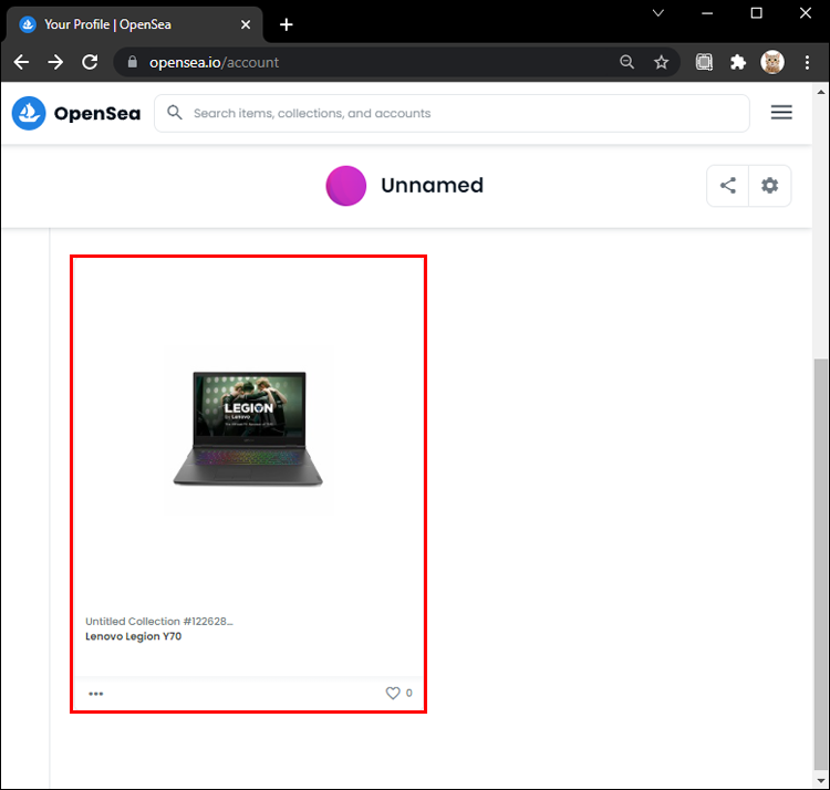 - Go to OpenSea.io/account and click on the My Items tab.