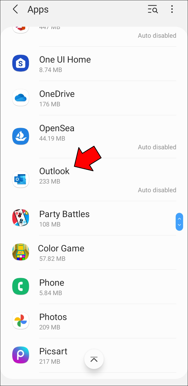- Locate Outlook on your app list.