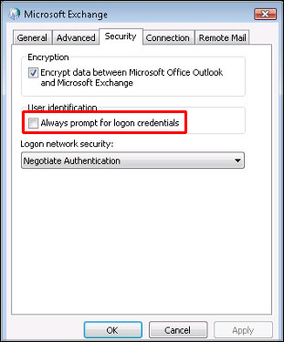 - Turn off “Always prompt for logon credentials” in the “Security” section.