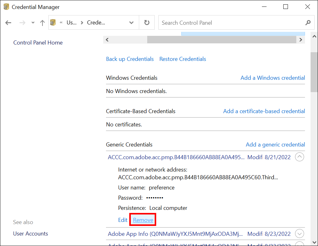 If you’re unsure whether the app has saved the correct login credentials, removing them completely is the best course of action. Follow these steps on Windows 10.