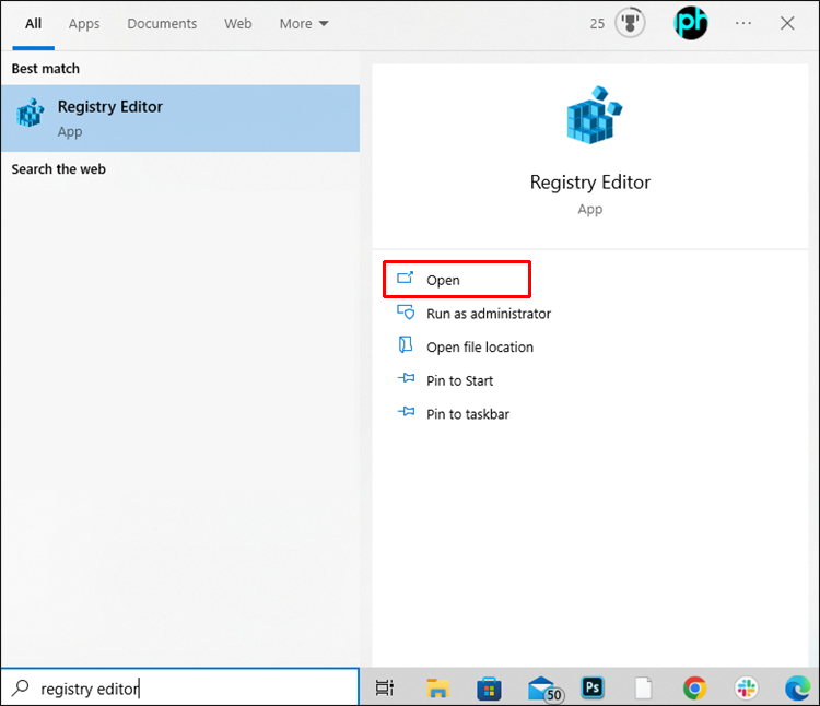 - Search for “Registry Editor” in your Windows taskbar.