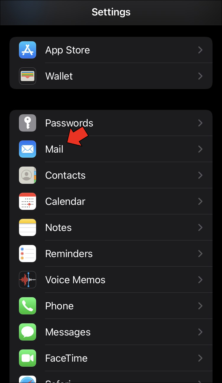 - Open your Settings app and find “Mail.”