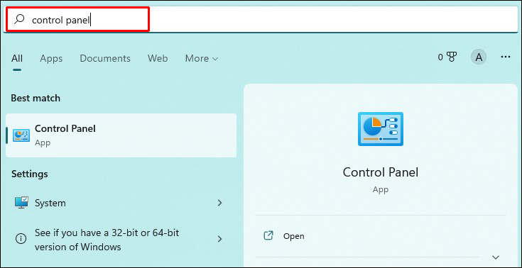 - Search for “Control Panel” in your taskbar.