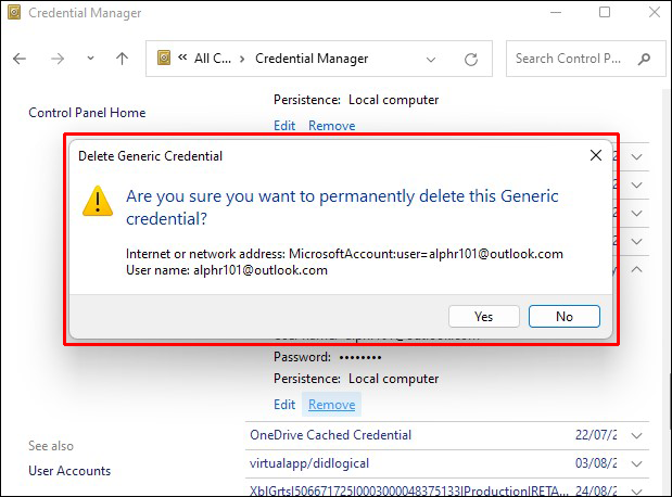 - Select “Remove” to delete the credentials.