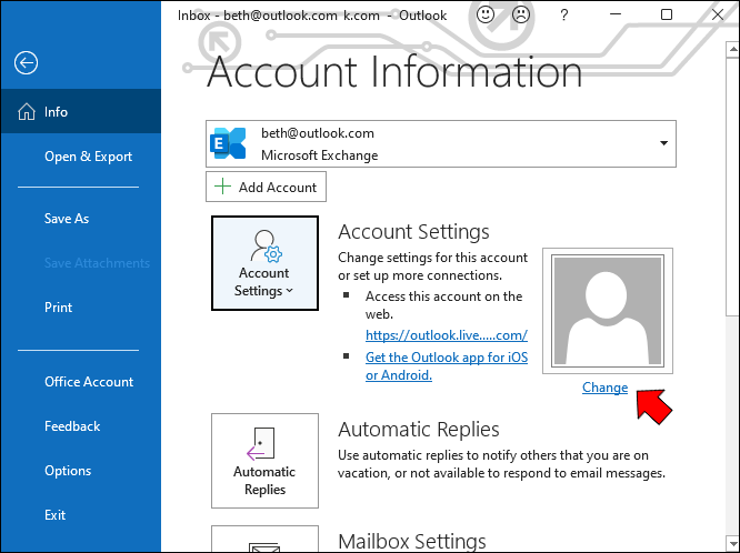 - Select your account and find the “Change” option.