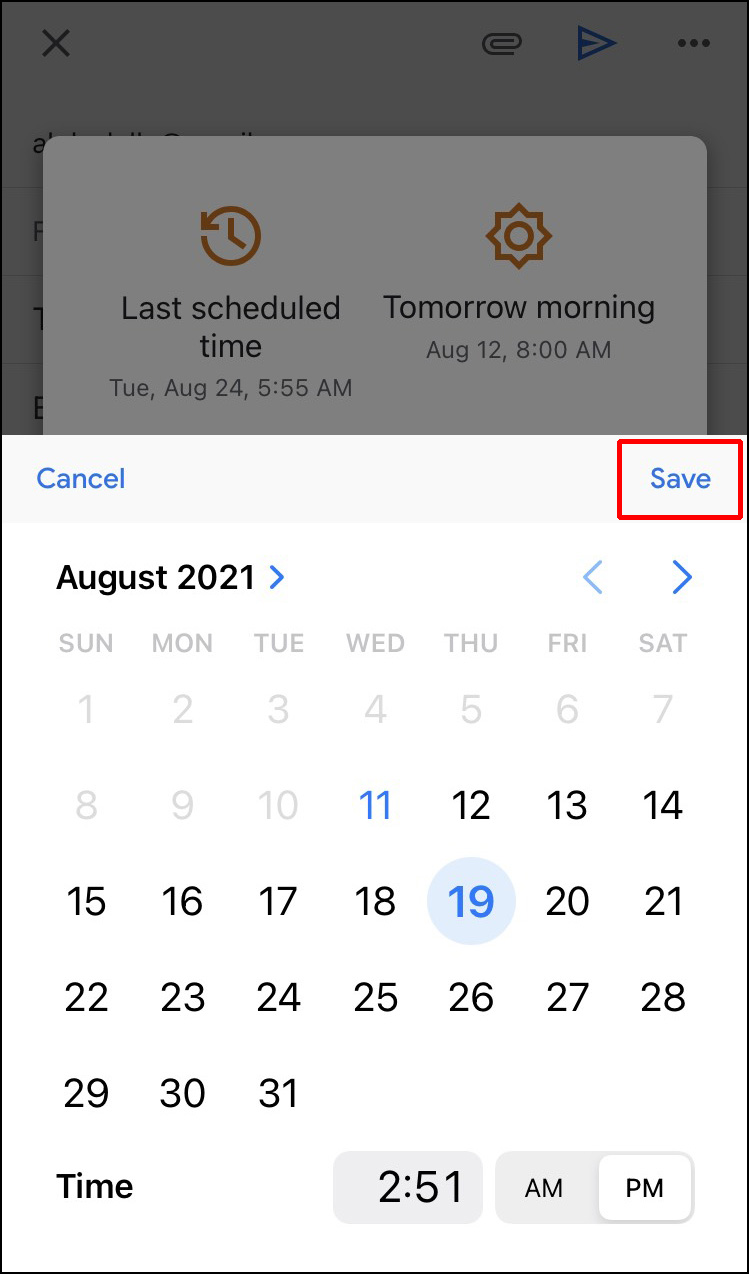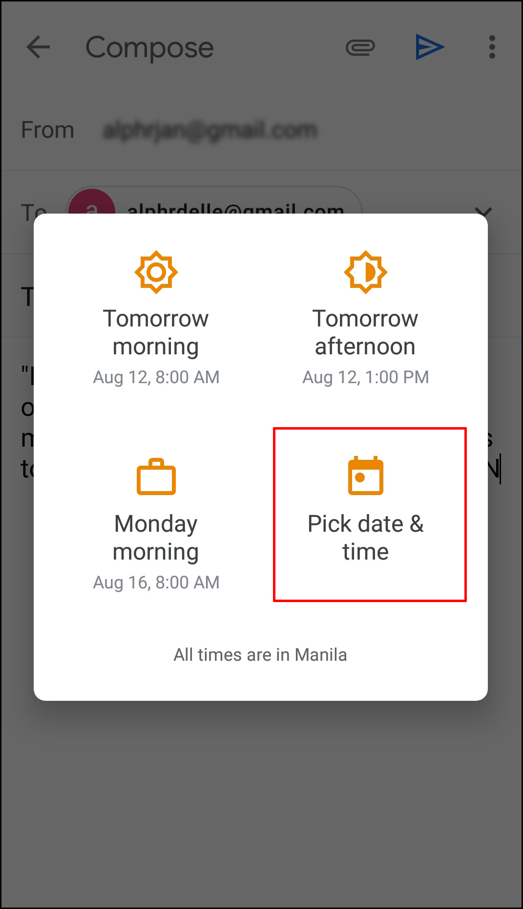 If you opt to use Gmail, follow these steps for scheduling an email: