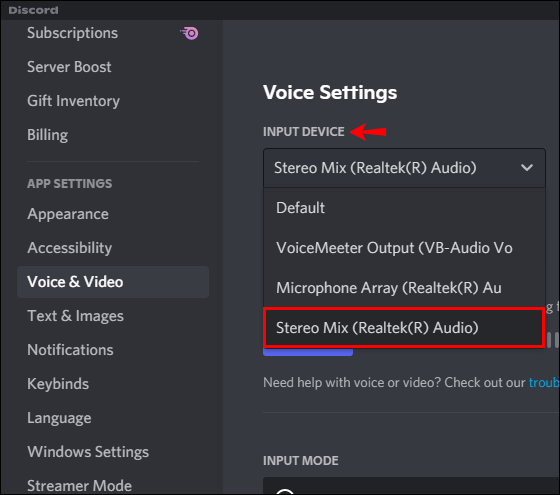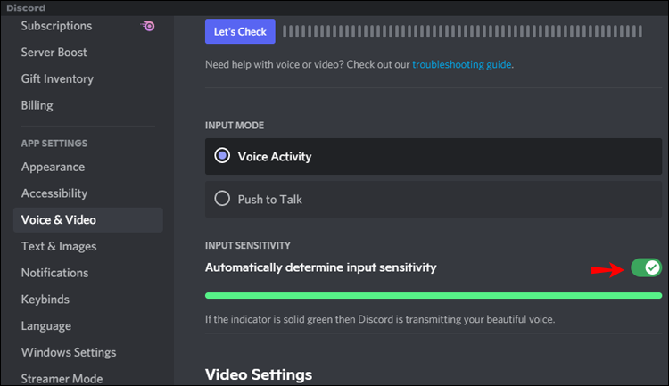 - Under “Input Mode,” ensure the checkmark is next to “Voice Activity.”