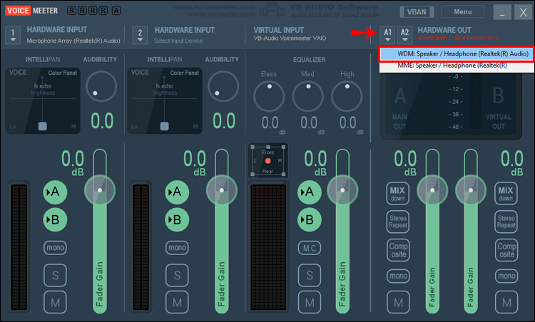 - Go back to the VoiceMeeter and choose your microphone as the first hardware input.