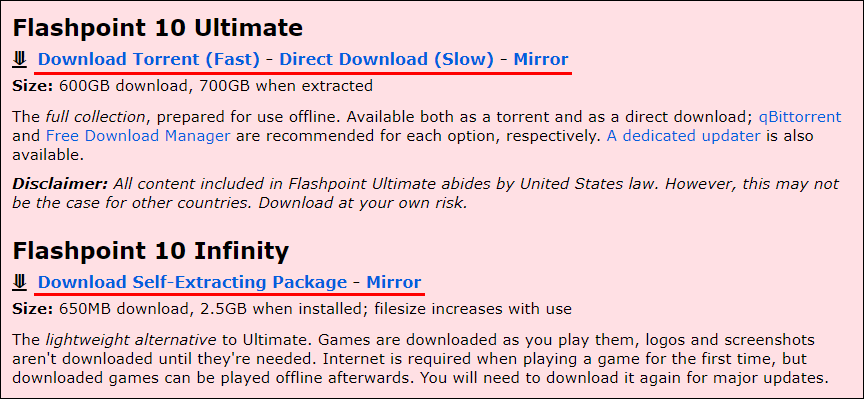 As mentioned, Flashpoint Ultimate is quite large, with 600 GB of data compressed and 700 GB after extraction. Flashpoint Infinity is only 650 MB, but the file size increases with every game or animation you download. If you can afford the space for Ultimate, then, by all means, download it, though Flashpoint Infinity is the recommended option.