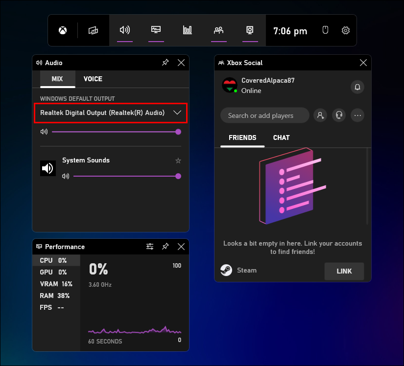 Setting the Default Sound Output Device Using Xbox Game Bar