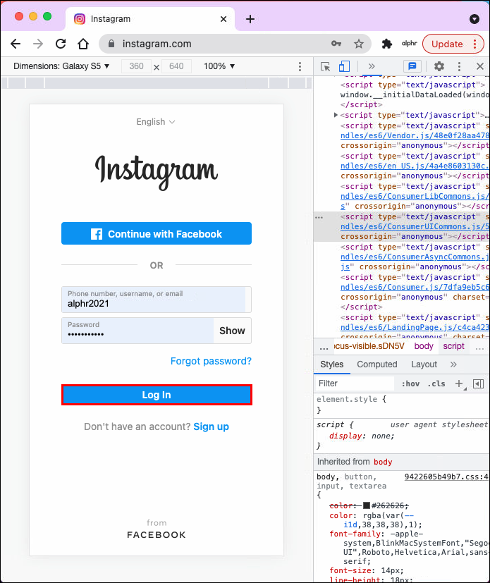 - Open the Chrome browser and go to Instagram’s website.