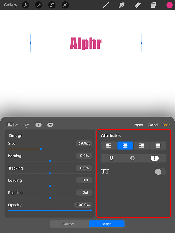 This raster editing graphics app also offers a variety of text styling options. Here’s how you can modify your text once you’ve added it to Procreate: