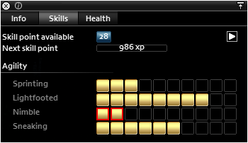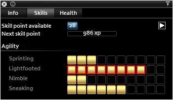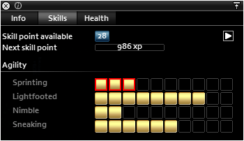 Each category has two to eight Skills, and each Skill contains 10 levels. You have to earn XP to get Skill Points to advance to Level 10.