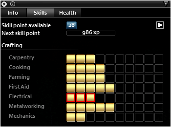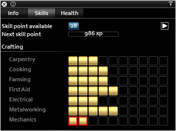 Players gain Skill Points the more XP they earn. Eventually, they can level up a skill by spending their hard-earned Skill Points. There are many skills in Project Zomboid, divided into five main categories: