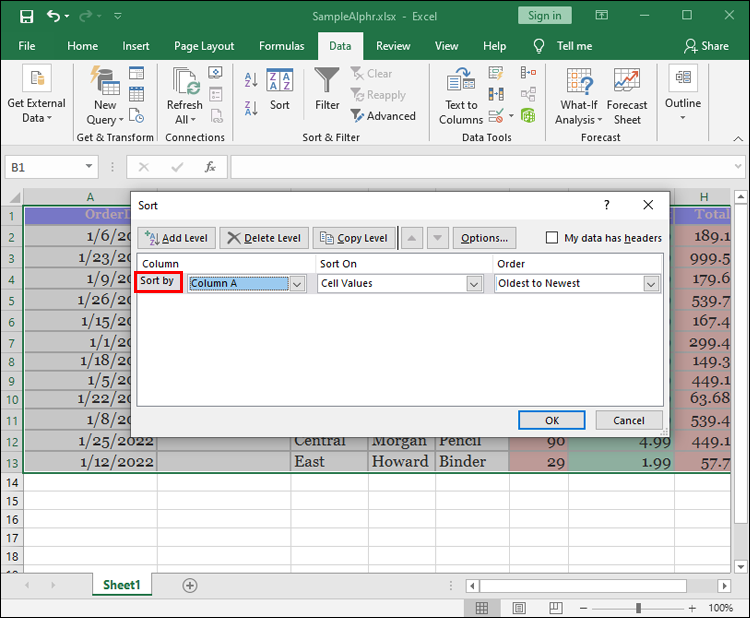 - Hit “OK” and browse your “Sort By” menu.